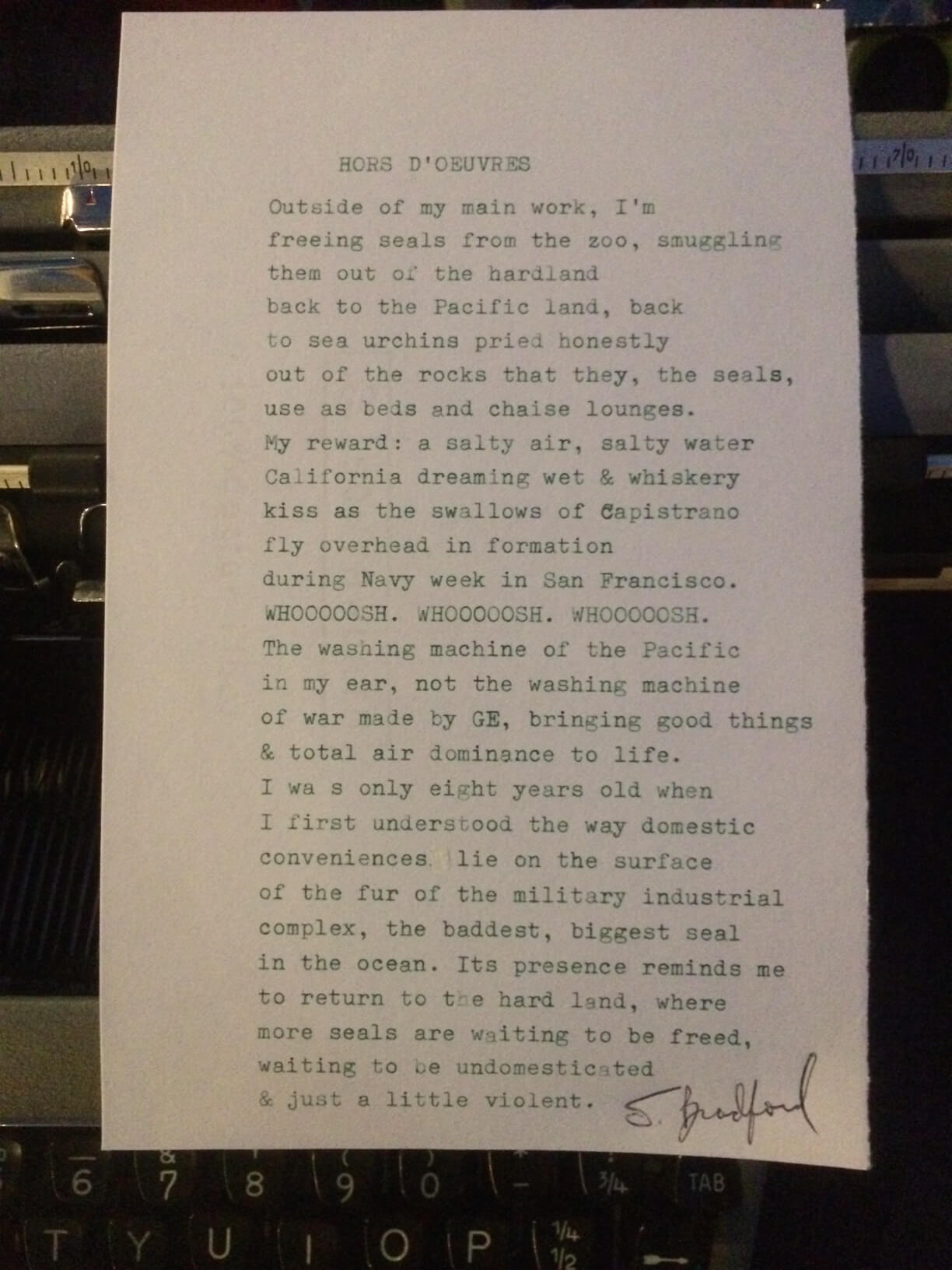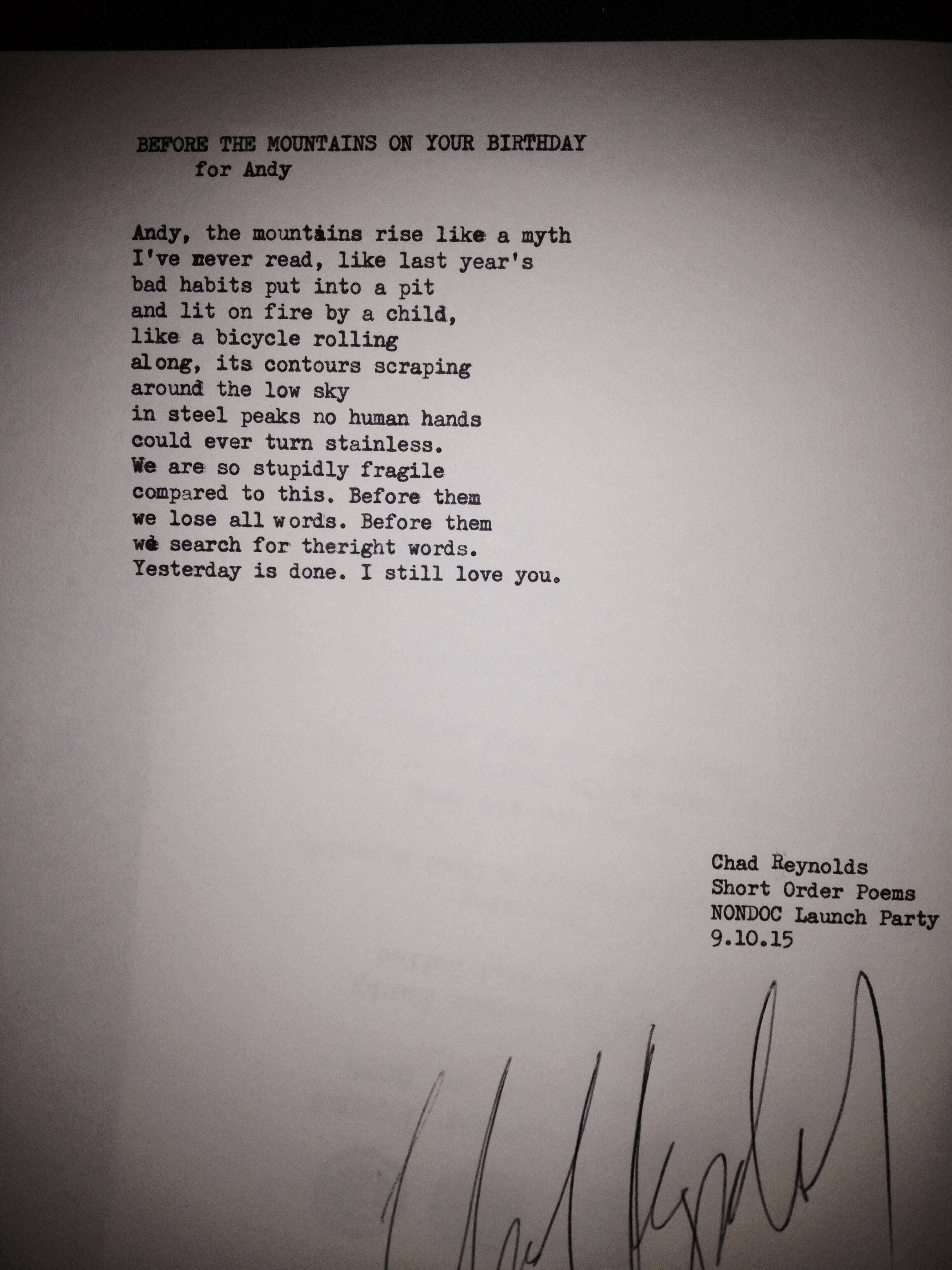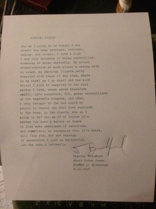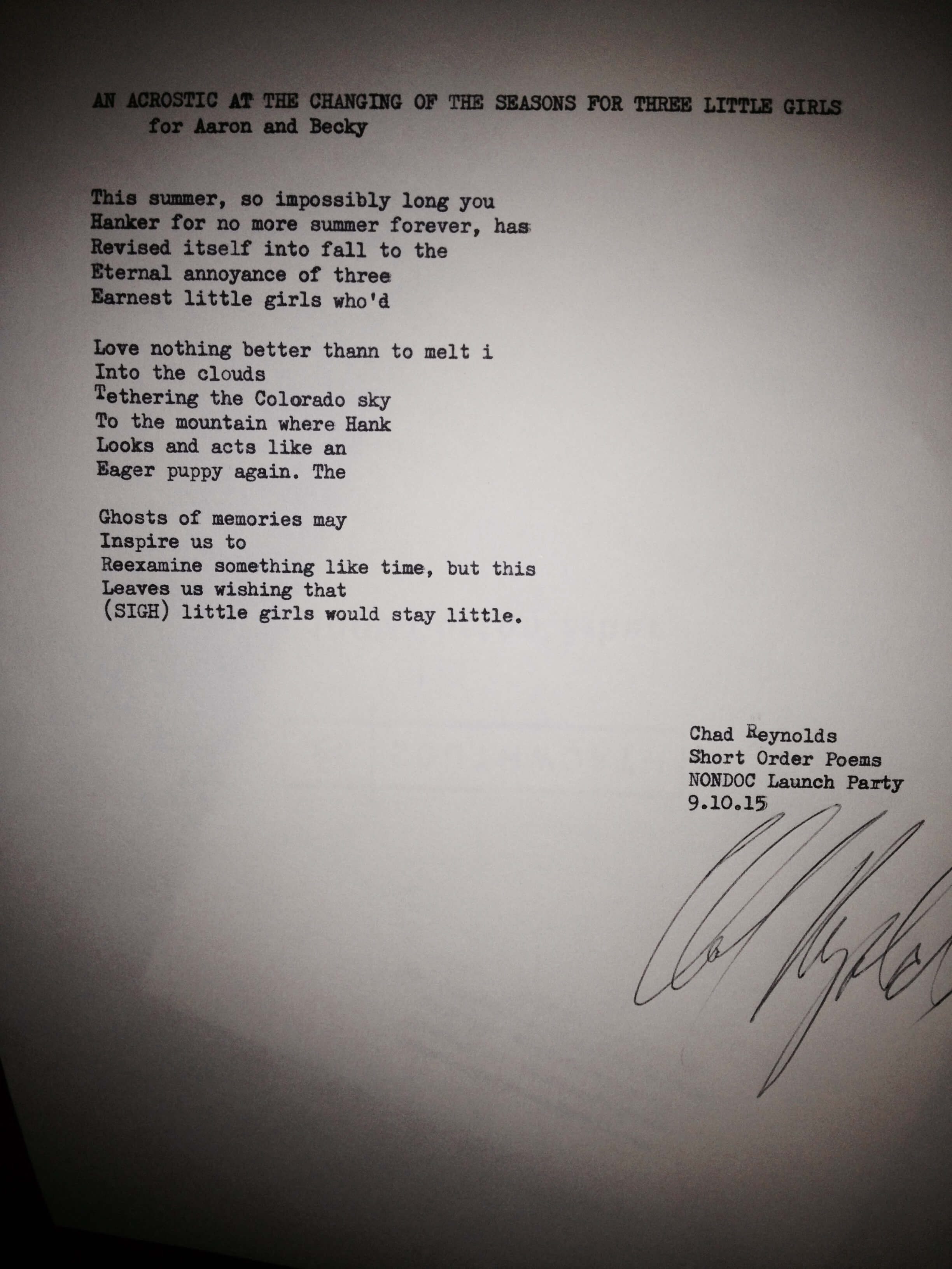 The group Short Order Poems attended the NonDoc “launch party” on Sept. 10. Here are six poems they created on the spot and on their typewriters.