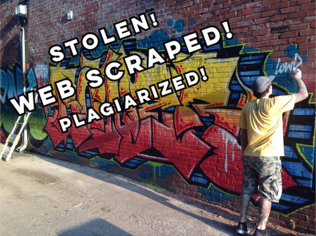 Not only is it annoying to see one’s original content so blatantly misappropriated, it’s (potentially) a detriment to our site’s traffic because it pulls search-engine indexes, keyword supremacy and other revenue-related metrics from our site. Further, it’s a violation of our terms of service and illegal with regard to copyright infringement.