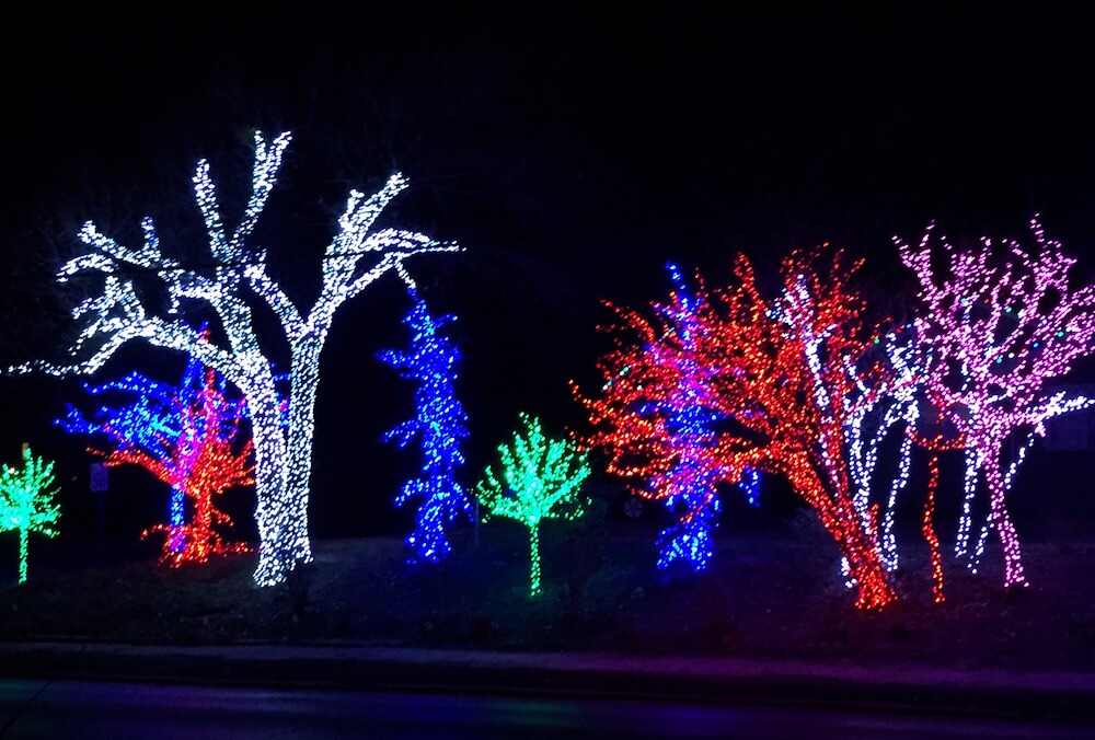Lights decorate trees in central Oklahoma City. (William W. Savage III)