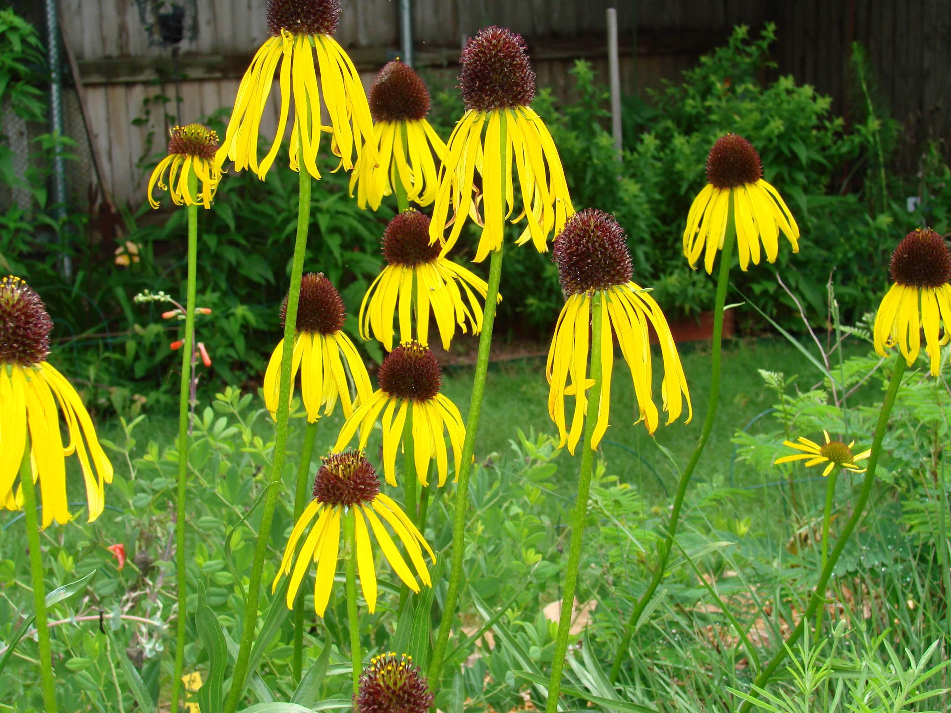 Every garden should contain Oklahoma’s state wildflower. A hardy, prolific bloomer throughout the summer and fall, this plant grows from 1 foot to 2.5 feet tall and spreads from 1 foot to 2 feet. The flower heads range from 1.5 inches to 2.5 inches and are reddish-orange with yellow tips. This plant reseeds well and can be very profuse, so you may wish to remove a few of the seed heads before they scatter their seeds. This is a prairie plant that prefers full sun and good drainage. You probably want several of these plants planted near one another.