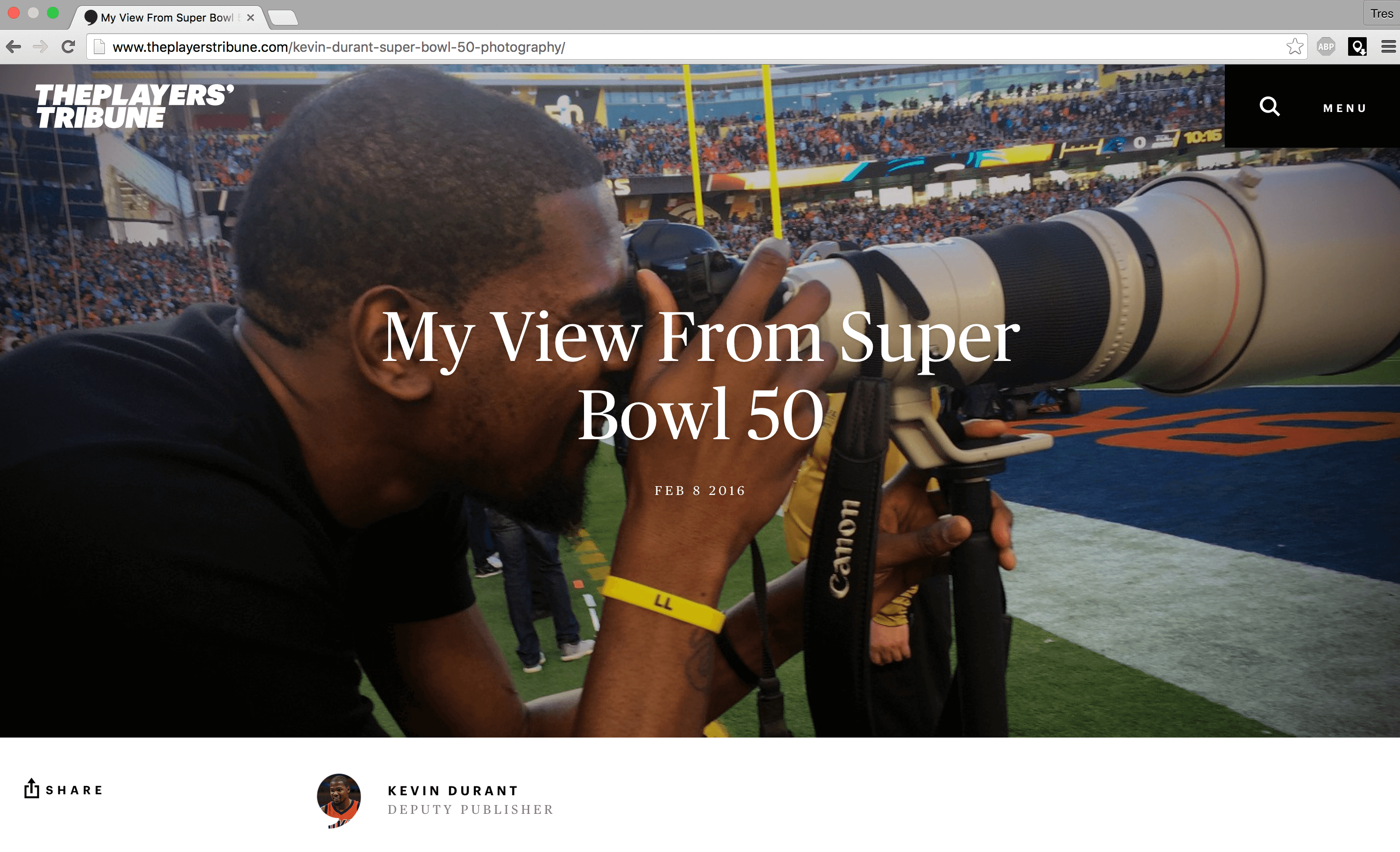 If you saw the pictures of Kevin Durant working the Super Bowl sidelines as a photographer Sunday, you might have noticed a Canon camera, an enormous 400mm telephoto lens and his all-black attire.