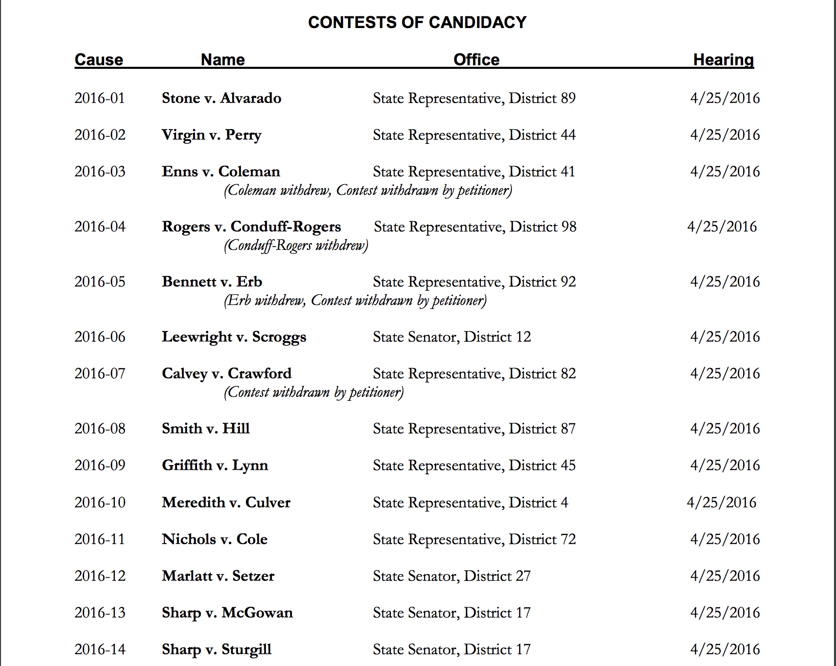 While a record number of candidates filed for Oklahoma offices this month, the Oklahoma State Election Board will hear more than two dozen contests of candidacy today.