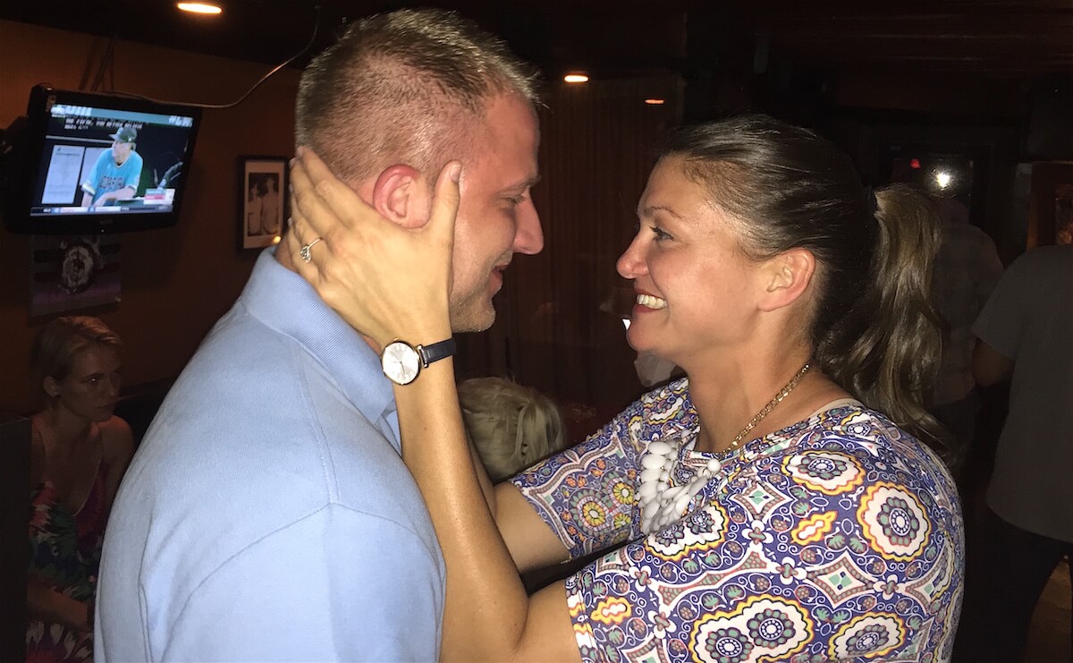 By the time Walke kissed his wife in the picture above Tuesday, he had prevailed in House District 87’s Democratic primary over Kelly Meredith by a mere 26 votes, 965 to 939.