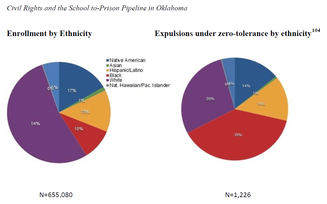 In Oklahoma, the committee notes, “about 15 percent of African American and 7.3 percent of Latino students are disciplined with out-of-school suspension, compared to 4.7 percent for white students.”