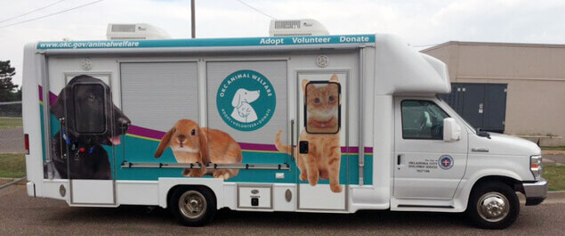 The Waggin’ Wagon was donated by the Stanton Foundation, a Massachusetts-based organization that provides grants for mobile pet-adoption vans, among other things. The Oklahoma City Council voted in 2014 to accept the donation.