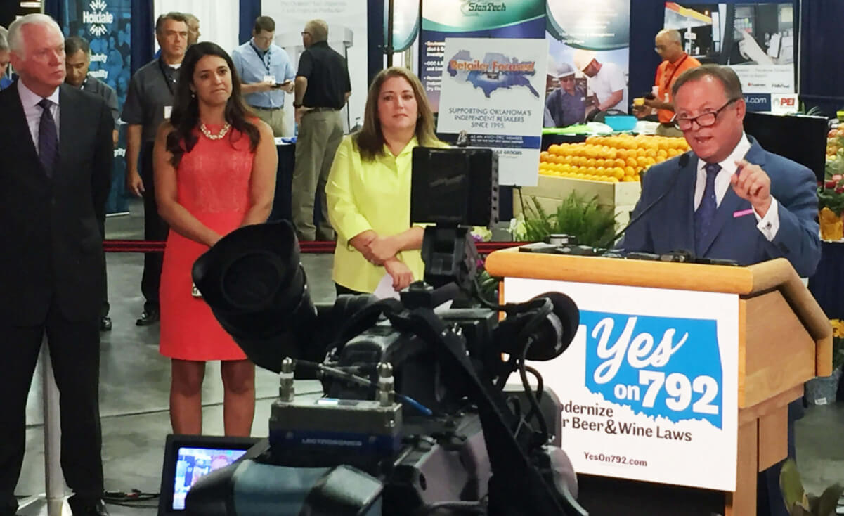 The Yes on SQ 792 campaign’s event intended to educate the public, although the provided press packet only noted that “passage would allow the sale of wine and regular, cold beer in grocery and convenience stores across Oklahoma.”