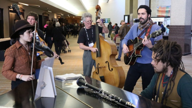 More than 2,700 delegates from around the world attended the event Feb. 15 through 19 at the Westin Hotel in Kansas City, Missouri. Tulsa’s Horton Records label, the Woody Guthrie Center and Kaiser Family Foundation are significant sponsors helping Okie musicians participate.