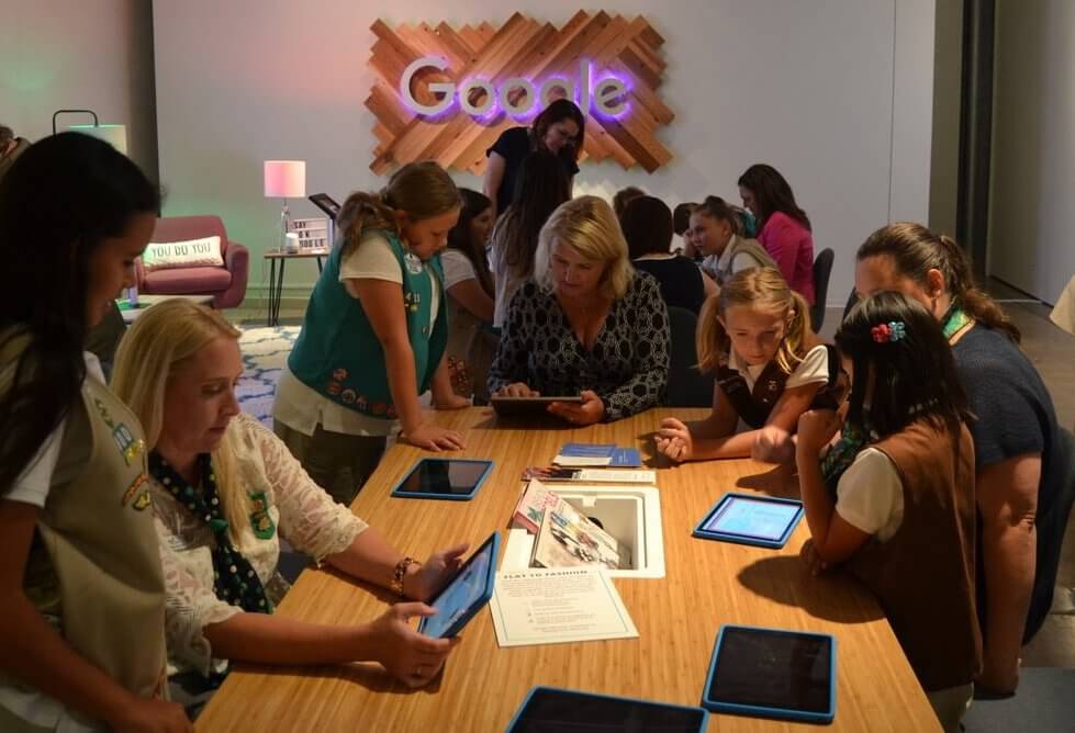 Tuesday, Google helped host a Teach Me How to Code event in Oklahoma Contemporary’s Google Learning Gallery. The workshop sought to show young girls from metro-area Girl Scout troops that they can use coding in any field, from implementing a program to work out a recipe’s ingredient measurements to calculating how fast a horse runs and how high it jumps. The concurrently running Coded_Couture art exhibit provided a creative backdrop for the Girl Scouts to participate in coding.