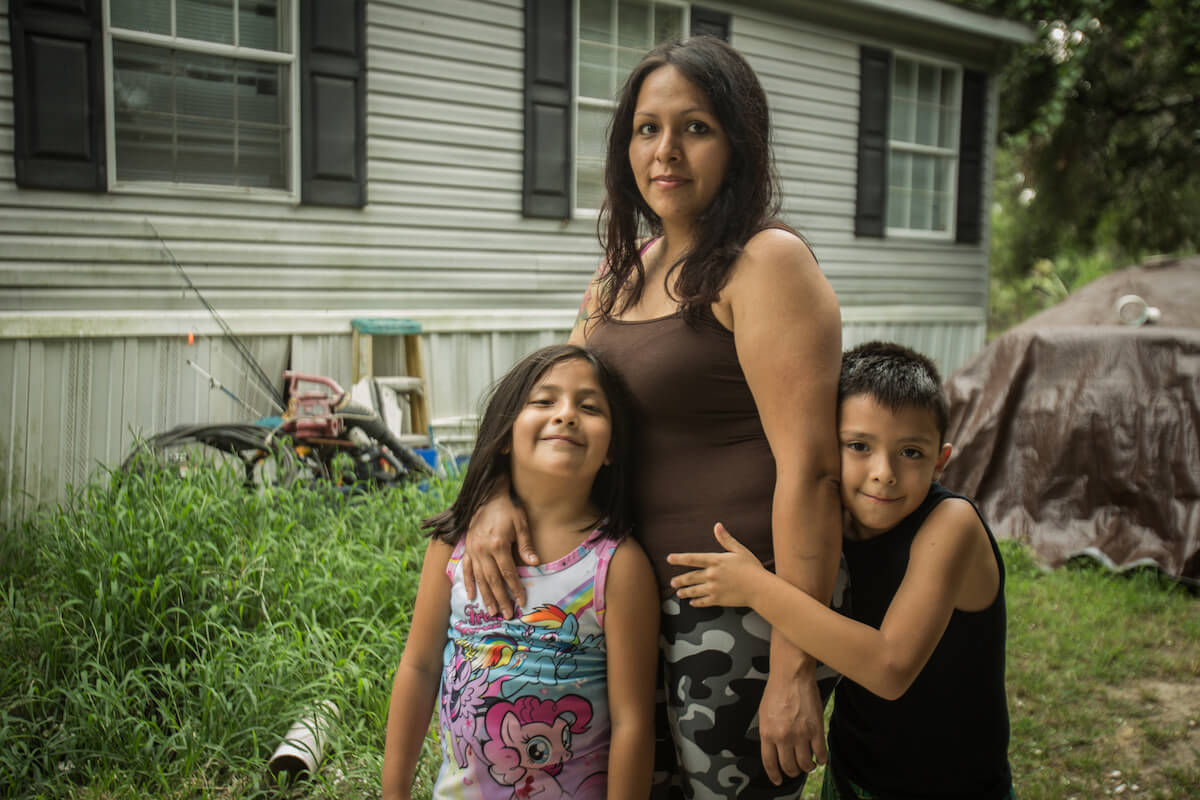 Denise Hernandez and her two children, Darnely and Simon, live in a mobile home on Hilton Head Island, S.C. (Bryn Caswell/News21)