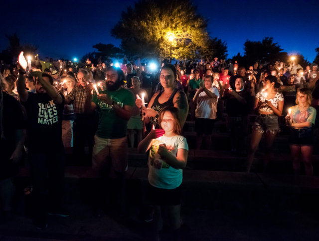 The Andrews Park event ended in a candlelight vigil in memory of the three people who died in Virginia.