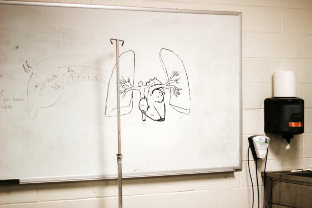 Like any emergency room at night, injuries that need treatment are as varied as the patients that come in. Much like the dog that didn’t make it, sometimes owners come home from working all day to find their pet sick or dying. Others suffer lacerations or attacks from other animals. In the big-animal side of the hospital, problems tend to revolve around prolonged labor that requires a C-section or similar actions.