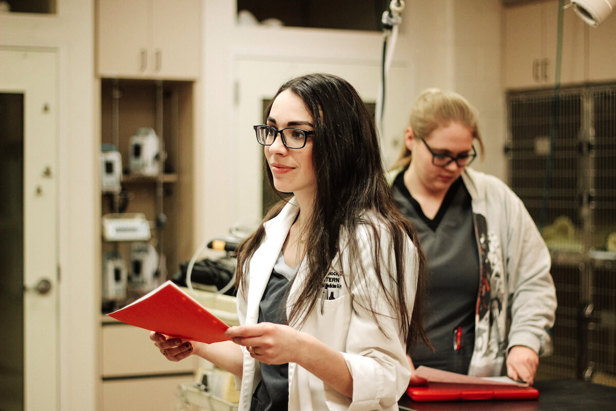 “We treat patients, but also our primary goal is to teach students to become veterinarians,” Schock said. “We have the vet students, but I also just graduated the school, and now I’m doing an internship with the goal of pursuing a specialty. I want to do surgery, and in order to do that, you have to do a residency. I’m in training for that right now.”