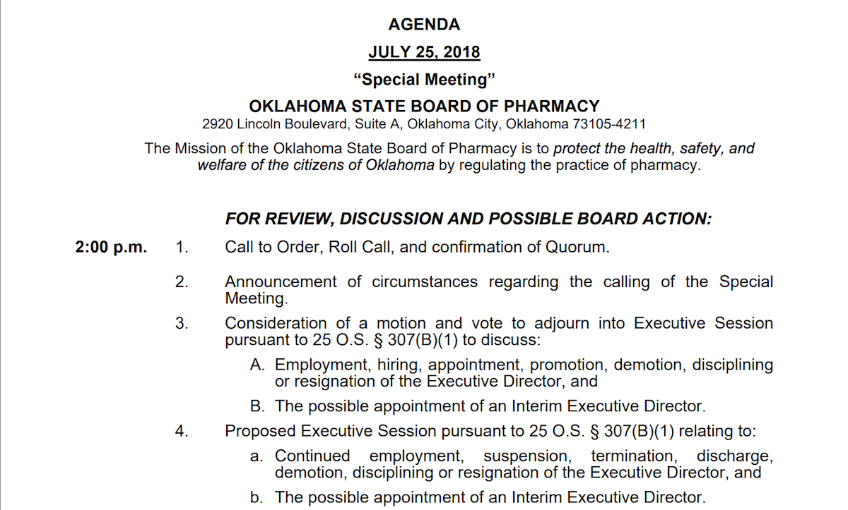 In the wake of the Church investigation, the Board of Pharmacy has announced a meeting for 2 p.m. this Wednesday. Its agenda features only one primary objective: to discuss in executive session the future of Church’s employment by the agency.