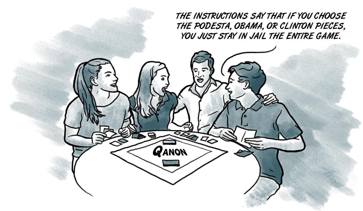One thing I’ve seen very little talk about — and the one thing that sticks out to me the most after observing this for several months now — is how QAnon people treat this theory and how they get involved with it. It’s very clear to me that it’s a lot like LARPing, a game, but a comfortable space where you can speak with like-minded people and feel like you’re solving a puzzle. Now, I don’t think QAnon is as harmless as that because there are many who take this very seriously. Most of the time, however, it looks like people treat Q as a slightly-more-than-passing interest in the subjects they’re talking about.