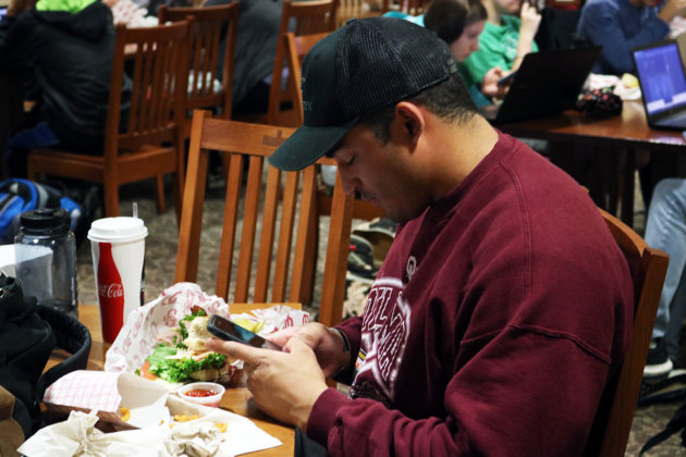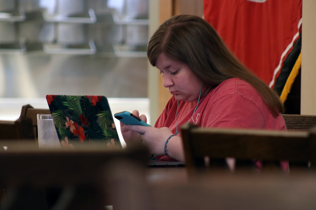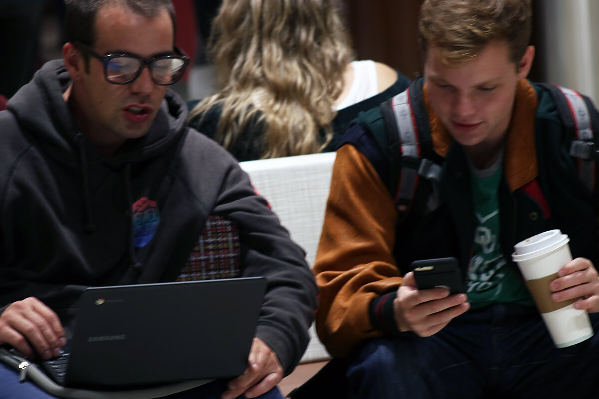 People sit at tables on Sept. 26 in the University of Oklahoma's Memorial Union. (Collin Gaddie)