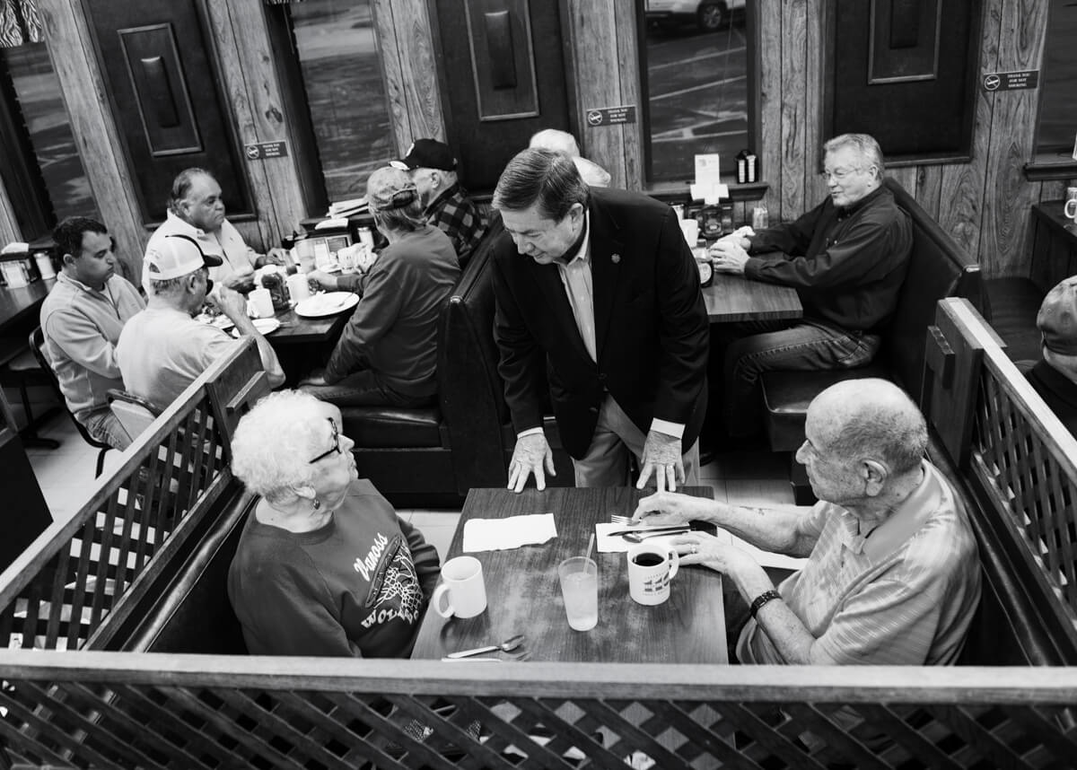 The day had begun around 7:30 a.m. at J.D.’s Café in Ada, where Nigh had met up with the Edmondson team — the candidate, his wife, Linda, and two campaign staffers. They drove to McAlester, then Wilburton, then Antlers.