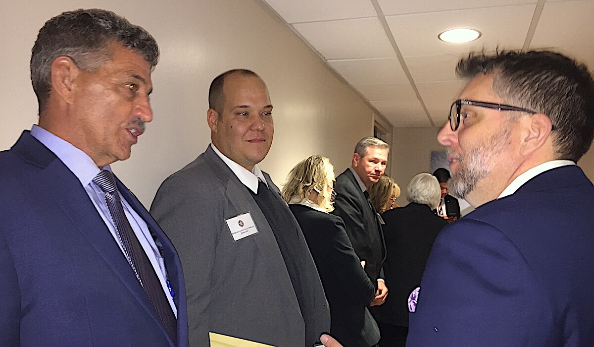 From left to right: Rep. John Talley, R-Stillwater, Rep. Logan Phillips, R-Mounds, and Rep. Marcus McEntire, R-Duncan, talk while waiting in line to take formal pictures Thursday, Nov. 15, 2018, at the Oklahoma State Capitol. (Tres Savage)