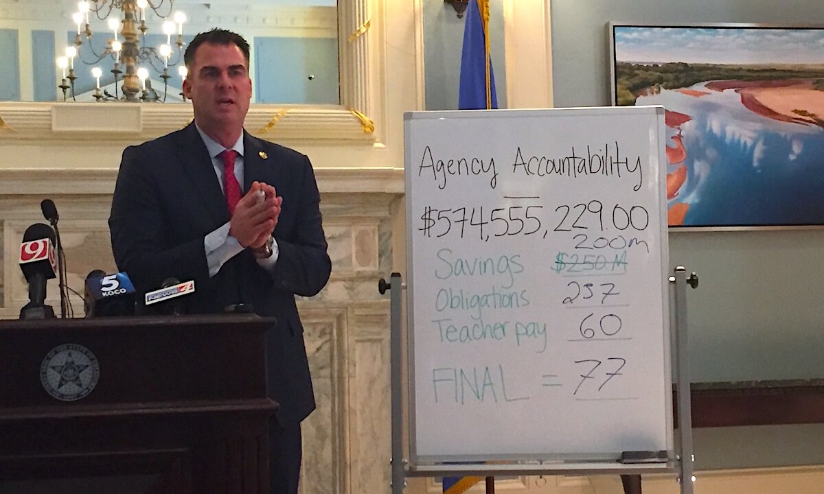 After the meeting, however, Gov. Kevin Stitt told media that $237 million of that revenue must be dedicated to existing financial obligations, and he called for an additional $200 million in savings and $60 million to be dedicated to a $1,200-per-teacher pay raise.