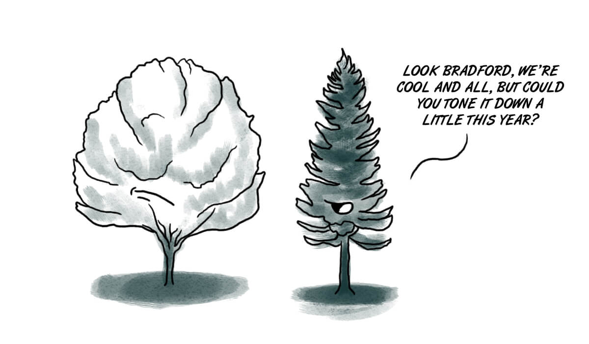 There are lots of other negatives to the Bradford Pear tree that require more arboreal knowledge than I have to properly analyze — they’re an invasive species and water hogs — but for now I guess I’m just going to join the hate train, and switch my preferences to magnolias. They seem alright.
