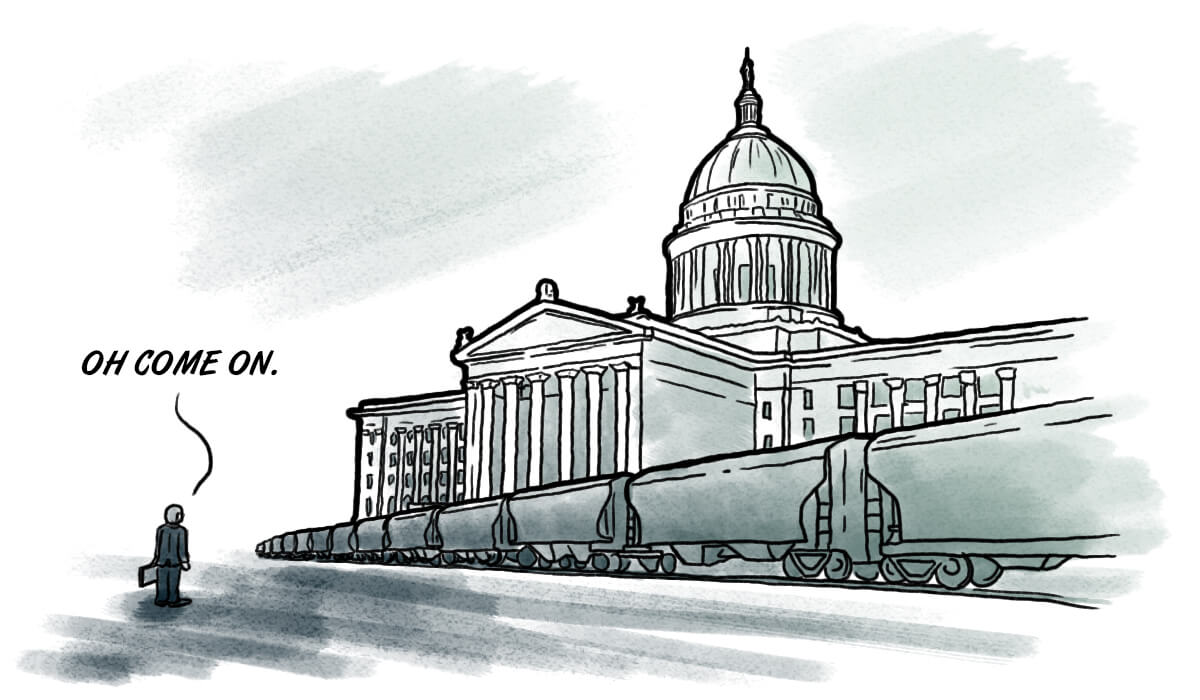 When I see a quote like, “It’s disappointing that politics and gamesmanship are getting in the way of policy” coming from the Oklahoma Capitol, the metaphor is almost too easy to illustrate, especially when it involves trains. Low-hanging fruit is sometimes the tastiest, you know?