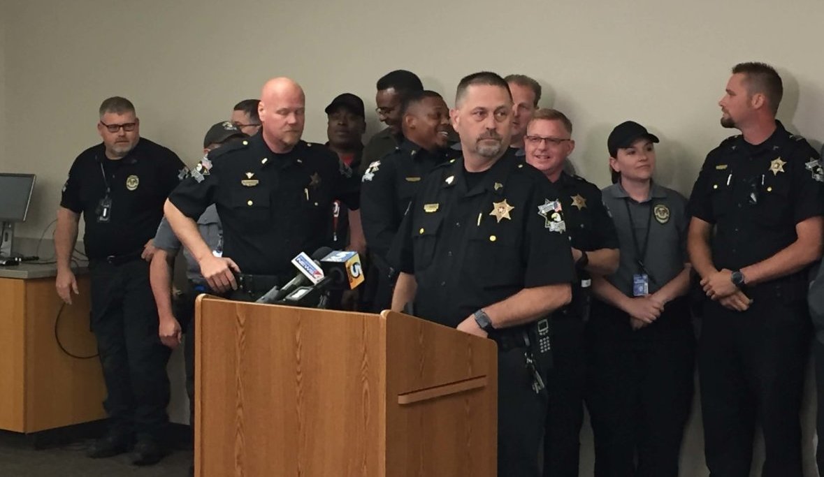 About 20 deputies and civilian employees flanked Harmon at the press conference. After, they fanned out to knock on doors with the hope of educating citizens about the threat to the department.