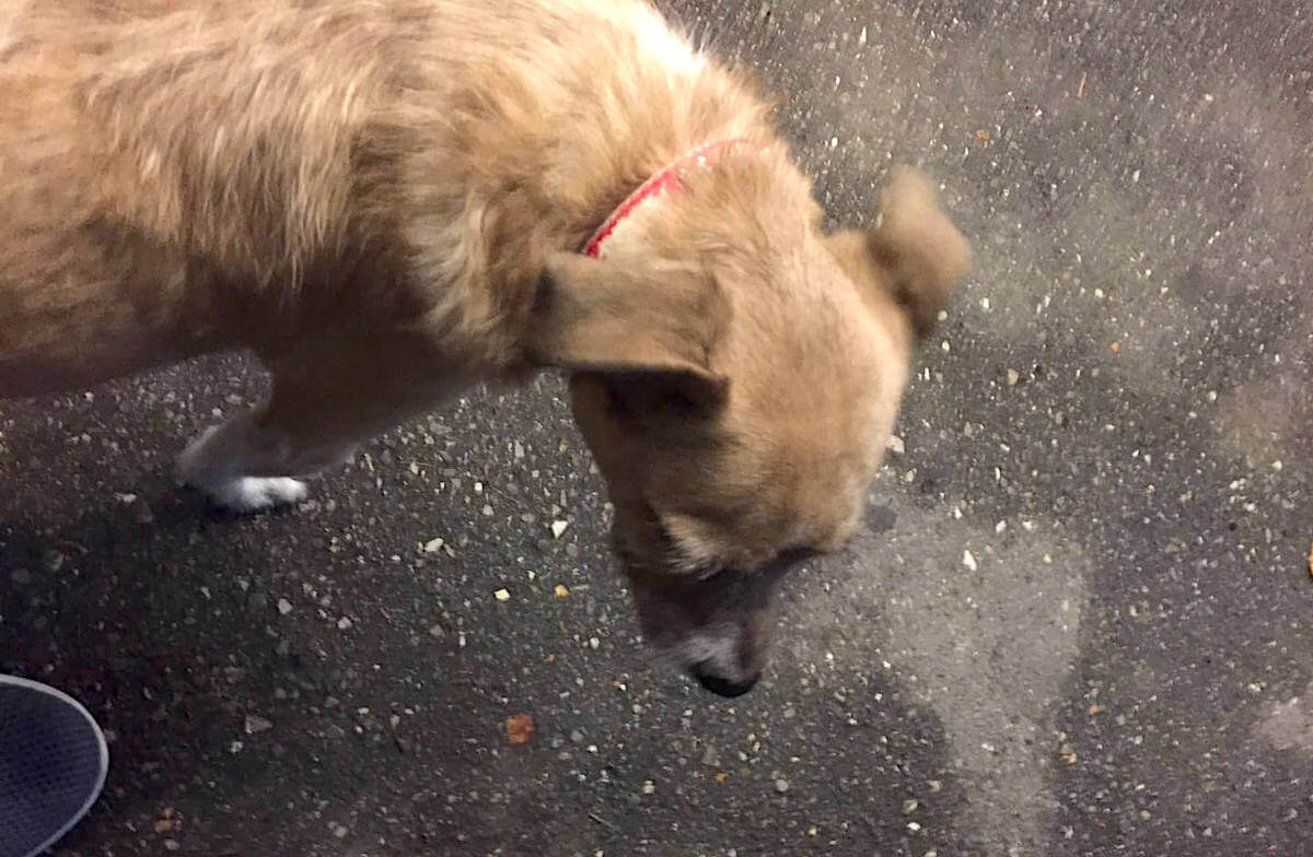 He later called the dog “Blutino,” as did the woman who ran the deli next door. Everyone showed affection for the little guy, and he liked me, too. That became clear when he started humping my leg with increasing intensity.