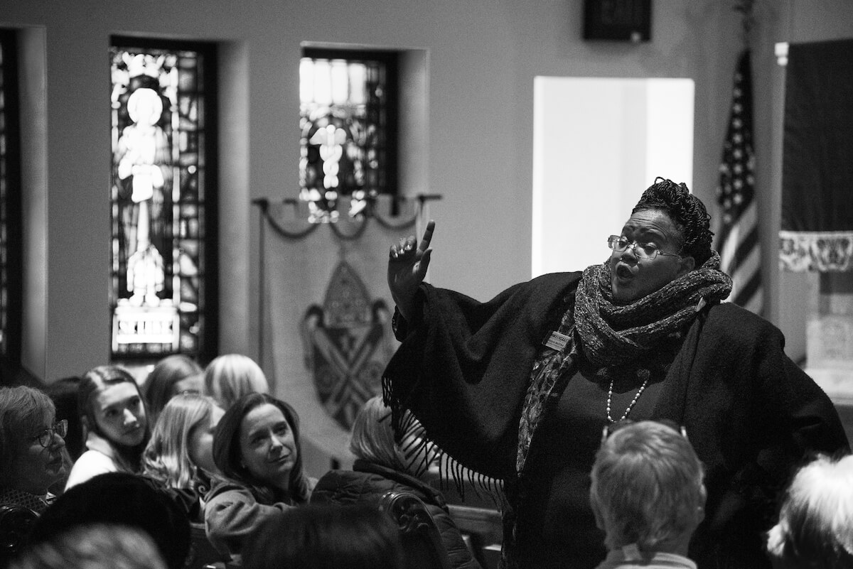 Before that happened, Fox 25 producer Tonya McCleary had expertly portrayed Harriet Tubman to open the ceremony. Also serving as the emcee of the program, McCleary took the podium and asked this congregation to stand, turn and greet someone in the room who was of a different skin color than themselves.