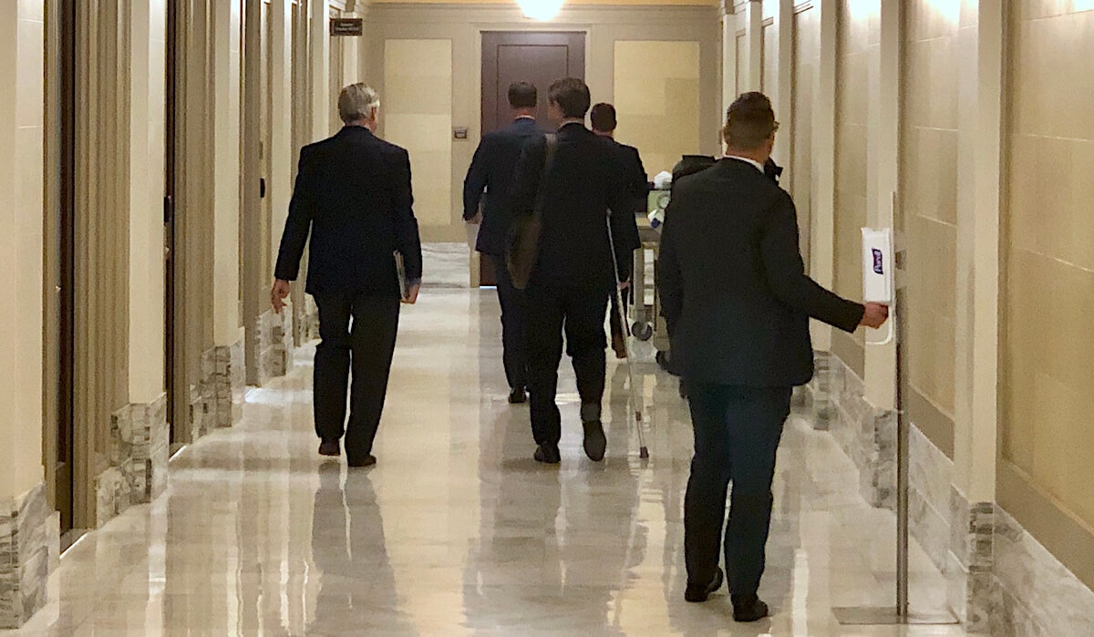 Wearing disposable black gloves and a pinstripe black suit, Jon Echols stood in the center of the chamber and grasped his microphone. Only two other legislators, a staff member and a smattering of media filled the expansive three-story room.