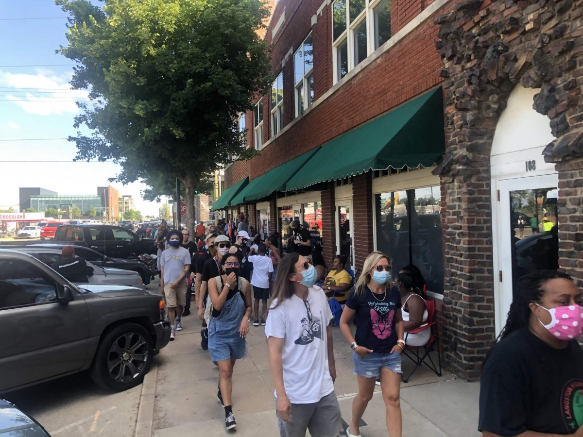 A multitude of Black individuals filled Greenwood, Tulsa’s historic neighborhood that was known as Black Wall Street prior to the 1921 Tulsa Race Massacre. Many were sharing laughs, with Black youth running around and eating various flavors of popsicles from Frios Gourmet Pops. Black elders could be heard telling teenagers “not to go over there” to the Trump rally.