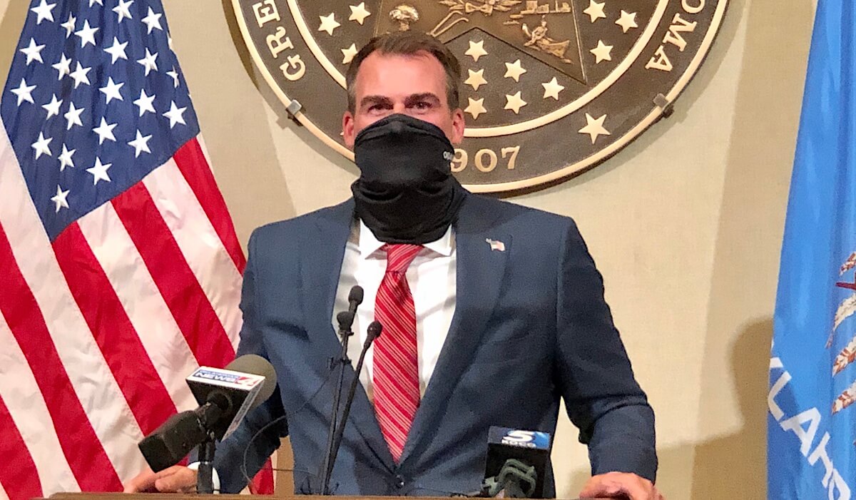 Oklahoma Gov. Kevin Stitt has emphasized the optional nature of mask wearing for weeks’ worth of press conferences, but today in a briefing before the Fourth of July weekend, the Republican governor urged the state’s population to wear masks when social distancing is not possible.
