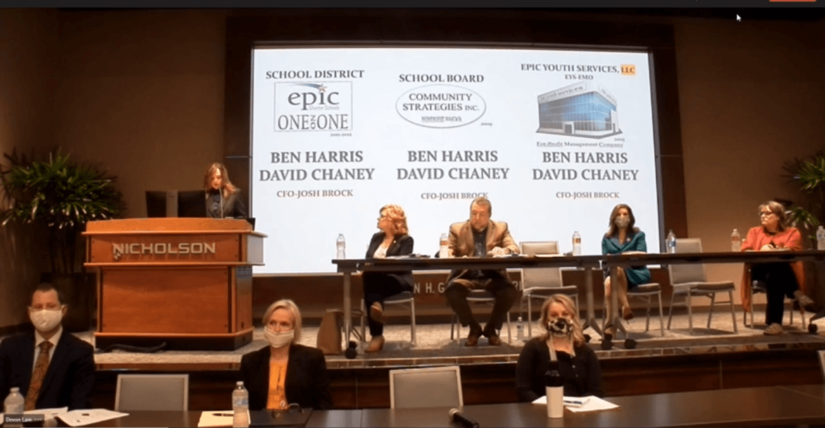 Byrd referenced the issue of a lack of distinction between Epic Charter Schools, the governing board Community Strategies and the management company Epic Youth Services. Epic co-founders David Chaney and Ben Harris also own and operate Epic Youth Services, with Josh Brock acting as chief financial officer for all three entities.