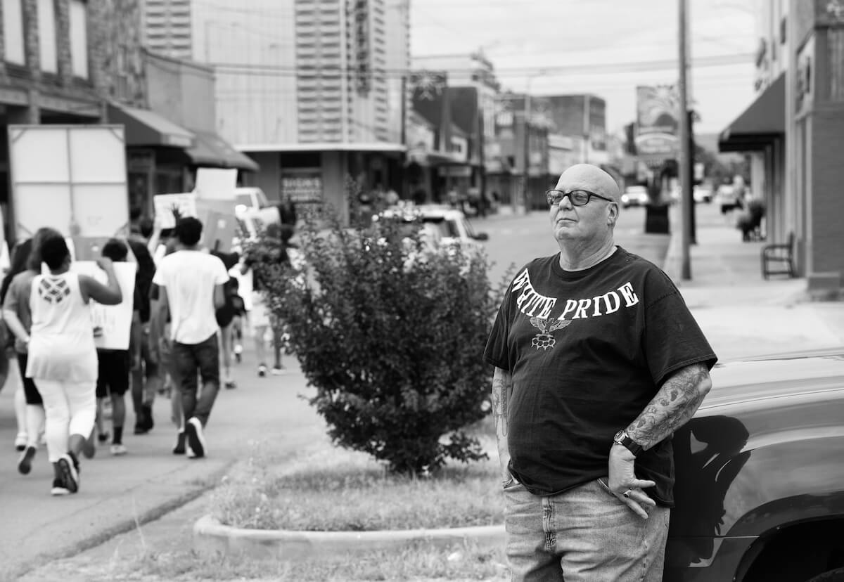 Or, the man wearing the white supremacist t-shirt standing on a street corner observing the marchers for racial justice who ignored him.