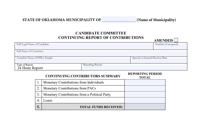 The City of Edmond does not provide candidate campaign reporting information on their website. Information was provided by City of Edmond administrative specialist Nicole Koehn.