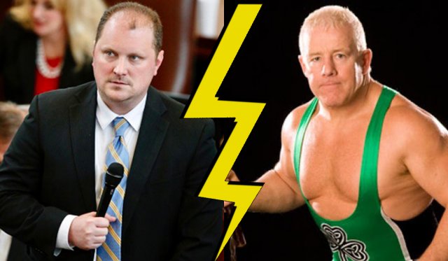 Fit Finlay carries a shillelagh and is known as one of pro-wrestling’s legitimate tough guys. We would make a contribution to the General Revenue Fund to (not) see Echols in Finlay’s singlet, but we would like a public vote on which of Echols’ assistant floor leaders would make the better Hornswoggle: Rep. John Pfeiffer or Rep. Dustin Roberts.