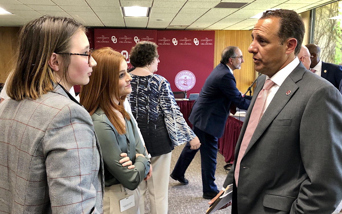 “What do you do as you try to balance excellence and affordability?” Harroz asked rhetorically, reminding regents and the audience that regents and the administration of his longtime boss — former President David Boren — had raised tuition almost annually, while also increasing debt obligations. “The increases were well above inflation. They were in excess of that. We have data to back all this up.”