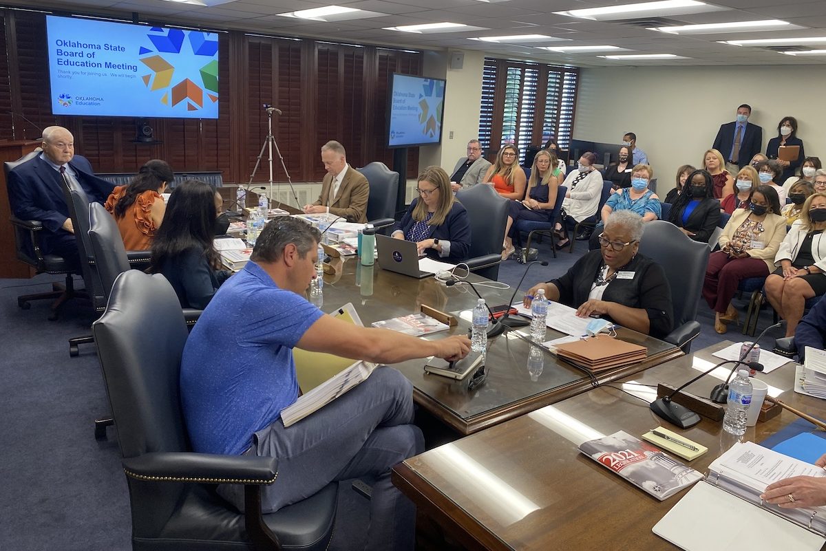 After executive session, State Superintendent of Public Instruction Joy Hofmeister commented on the issues at Ninnekah Public Schools, where the community has been grappling with sexual assault allegations against the district’s former girls’ basketball coach. While no action was taken on this issue during Thursday’s meeting, Hofmeister said the state board is preparing to take next steps as the criminal and civil court processes also unfold.
