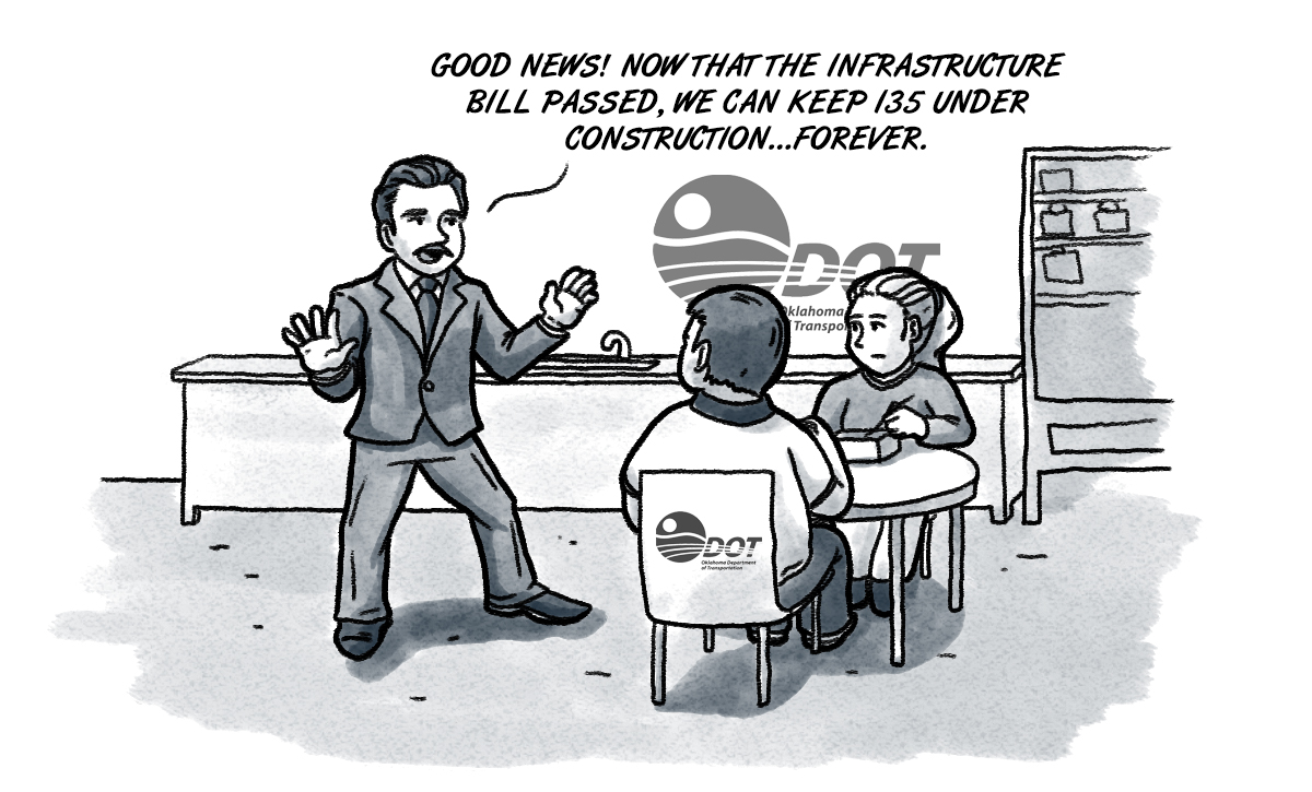 One big component, of course, is the repair and construction of roads and bridges, with which Oklahomans are all too familiar. If you’re like me, you encounter at least two areas of major, ongoing road work on any given day. At this point “perpetual, highly inconvenient road work” might as well be codified into the State Constitution.