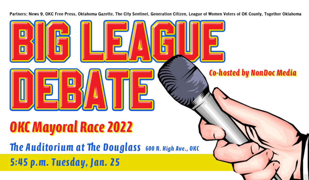 NonDoc is partnering with several media outlets and nonpartisan civic organizations to host the debate in the belief that Oklahoma City residents deserve an opportunity to see their mayoral candidates answer fair questions from professional journalists in a public setting during an election cycle.