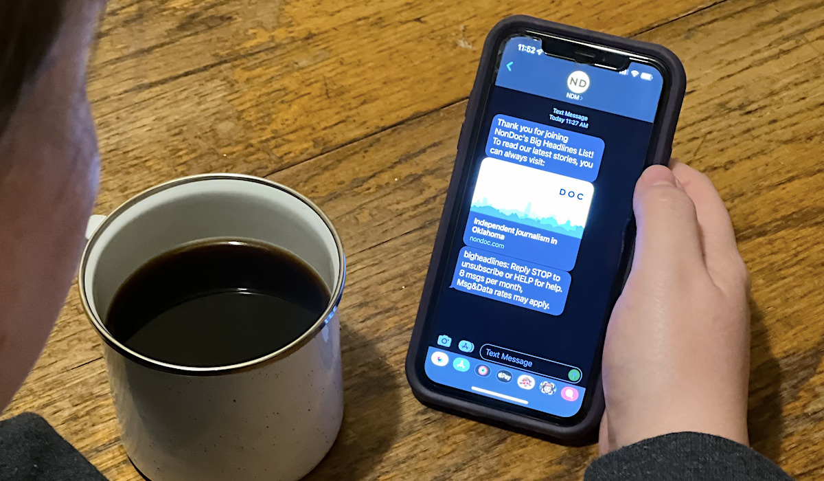 NonDoc is starting a text alert program that will send stories you care about straight to your phone. For example, do you want to stay up to date on Oklahoma education news? Text the keyword “oklaed” to 877-822-1202, and we will send you links to our top education articles as they are published.