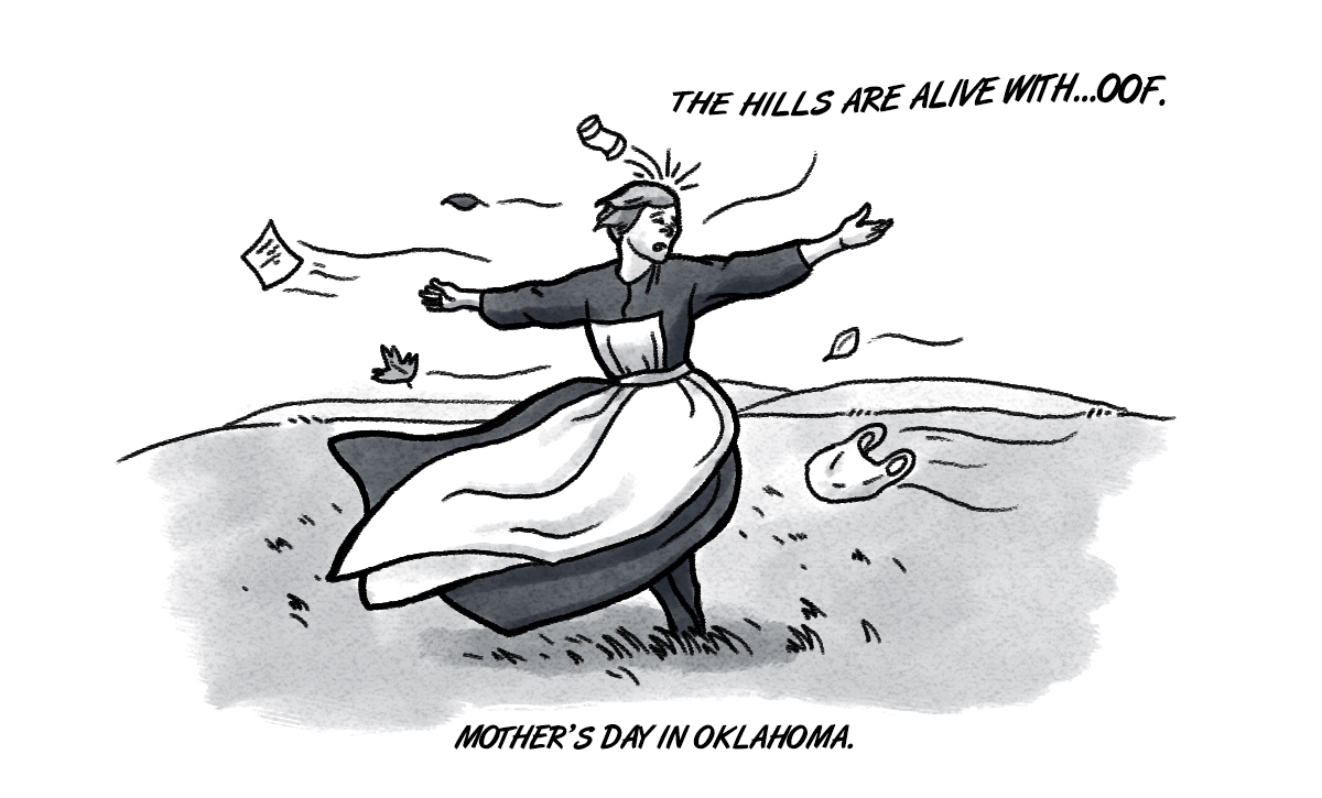Yes, we’re in Oklahoma, and we all know the wind often blows here, but the historic winds we have been experiencing lately seem… different. The frequency and speed of the wind is such that I’ve actually taken note of it, and my gas mileage has not-so-subtly let me know that I’ve been driving straight into it for some time now. I don’t believe I’ve ever felt anything quite like it. So be sure to give your mother an extra tight hug this year. It may be the only thing tethering either of you to the ground.