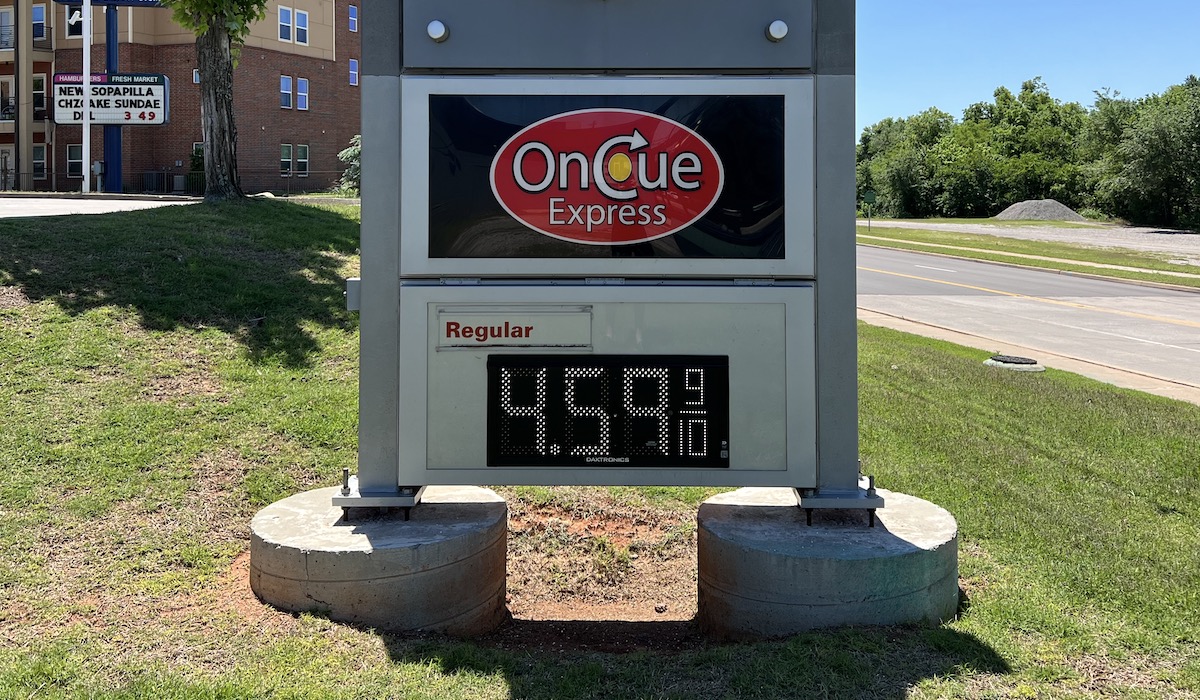 According to AAA Gas Prices, the average gas price in Oklahoma on Sunday had reached $4.14. A year ago, that price stood at $2.738. Diesel fuel was selling for an average of $5.06 per gallon.