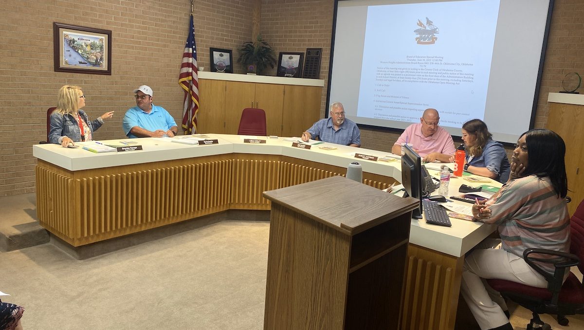 An item that did make it to Thursday’s agenda would have canceled the district’s contract with the Center for Education Law, a private firm focused on representing Oklahoma school districts that was hired by Western Heights after the State Department of Education took control of the district.