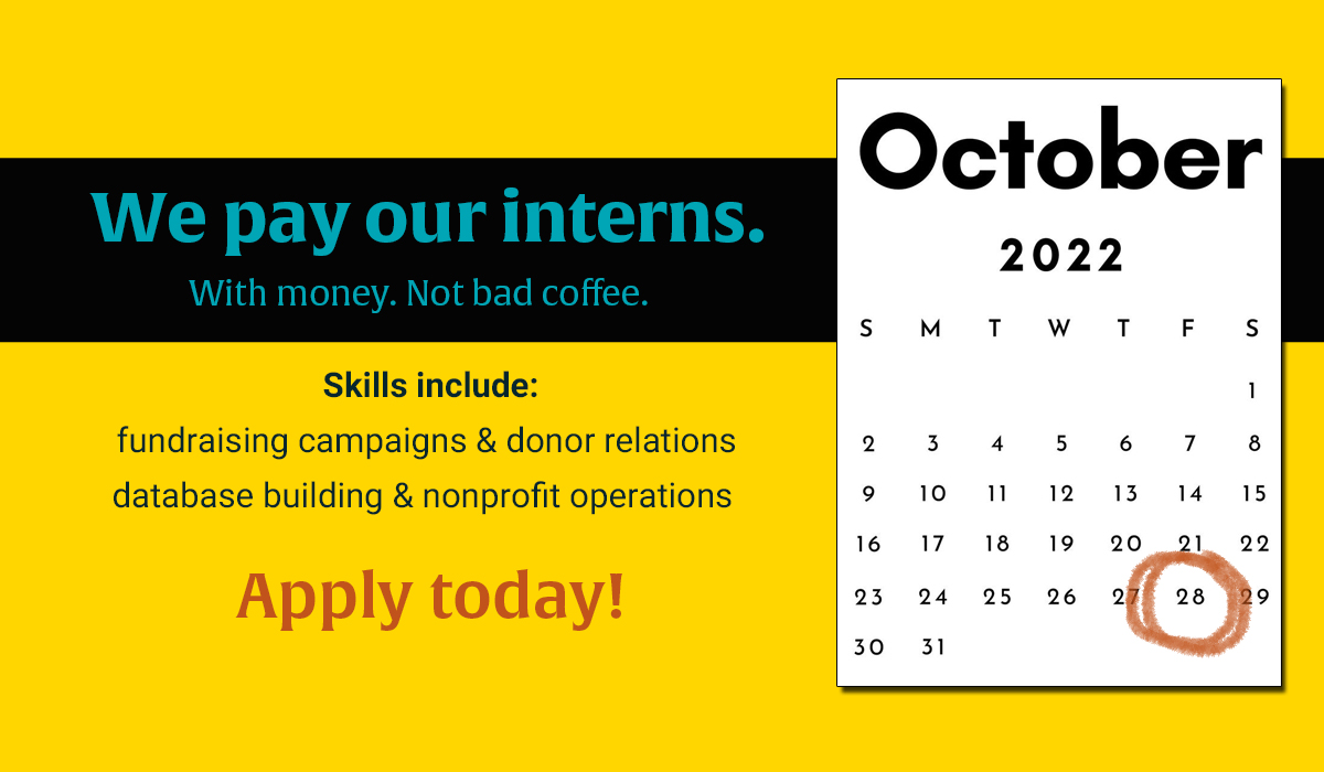 For the spring 2023 semester, we are hiring a (paid) nonprofit internship position, but applications for the position are due at the end of October.