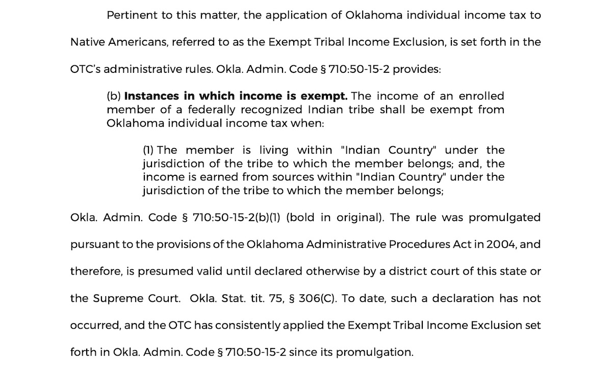 In what it calls a “precedential decision” that could apply to about 9,000 tribal citizen appeals, the Oklahoma Tax Commission ruled Oct. 4 against a Muscogee Nation citizen who had filed for an exempt tribal income exclusion. In its 19-page order released Wednesday, the state agency said tribal citizens who live and work for tribes in eastern Oklahoma do not qualify for the income tax exclusion outlined in state code if they do not live on land owned by their tribe or held in trust by the federal government.