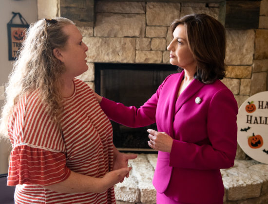“I was so overwhelmed and excited you were willing to come here in person. And not in a fundraising manner, but to come and listen,” McLaughlin told Hofmeister as the two sat on kitchen chairs brought into the living room for the meeting.