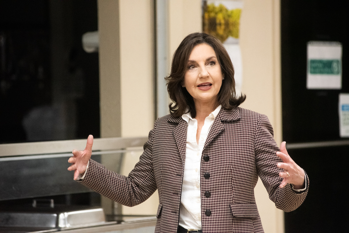“I have 515,000 miles on my SUV. I have put most of that on as state superintendent and on the campaign,” she told the Cache audience. “We have upgraded (to a bus), with more people who can get on and actually finish this campaign listening to Oklahomans and getting out the vote and taking the message that your vote matters.”