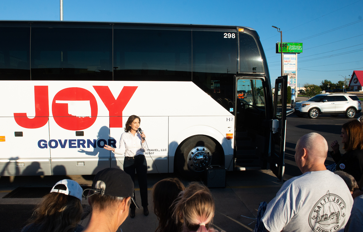 (Editor’s note: This article chronicles recent campaign stops by Joy Hofmeister. A separate article from the same author chronicles recent campaign stops by Kevin Stitt.)