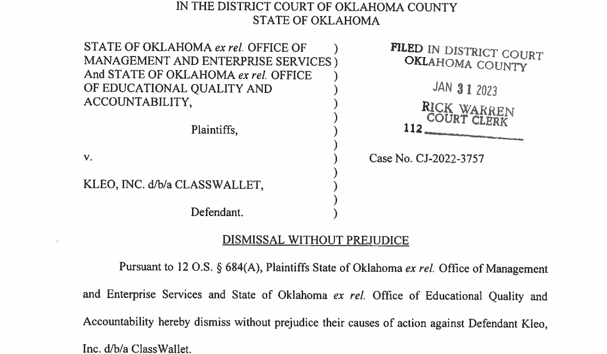 Oklahoma Attorney General Gentner Drummond dismissed a lawsuit today that his predecessor filed in August against a Florida company over its disbursement of pandemic-era education funds to low-income families.