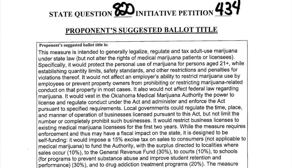 “Passage of State Question 820 would fuel economic activity, create jobs, and generate a new permanent stream of tax revenue for the state,” Livingston said. “Marijuana tax revenue is not a panacea, but it can support many critical government services that would otherwise go unfunded.”