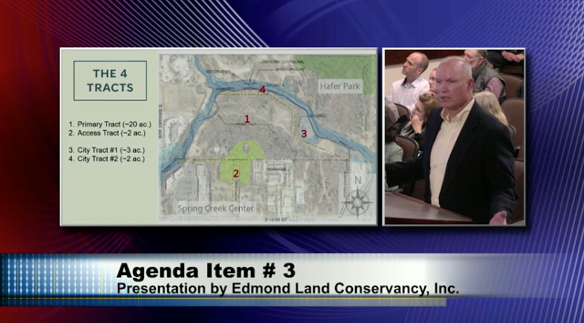 “We are also proposing, that you have before you, that tract four and tract three be woven into the conservation easement and be dealt with as one unit — everything south of Spring Creek.” Smithee said. “That’s completely your decision. They’re both Edmond properties. All of these are Edmond properties today. It would just be how they are managed and whether they are put into conservation easement or not.”
